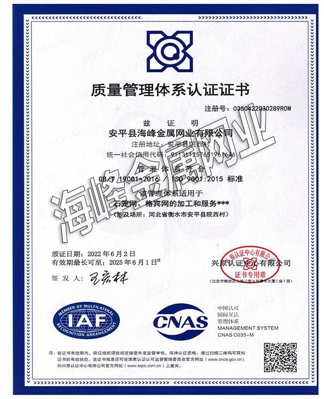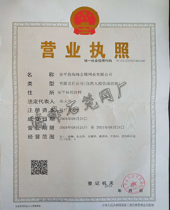 當(dāng)前位置:安平縣海峰金屬網(wǎng)業(yè)有限公司 >> 榮譽(yù)資質(zhì)