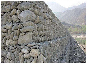 鉛絲格賓籠使用鍍鋅鐵絲編織成的網(wǎng)狀矩型箱體,在箱內(nèi)裝填塊石或天然鵝卵石,用于各類擋水工程和防沖刷建筑物。